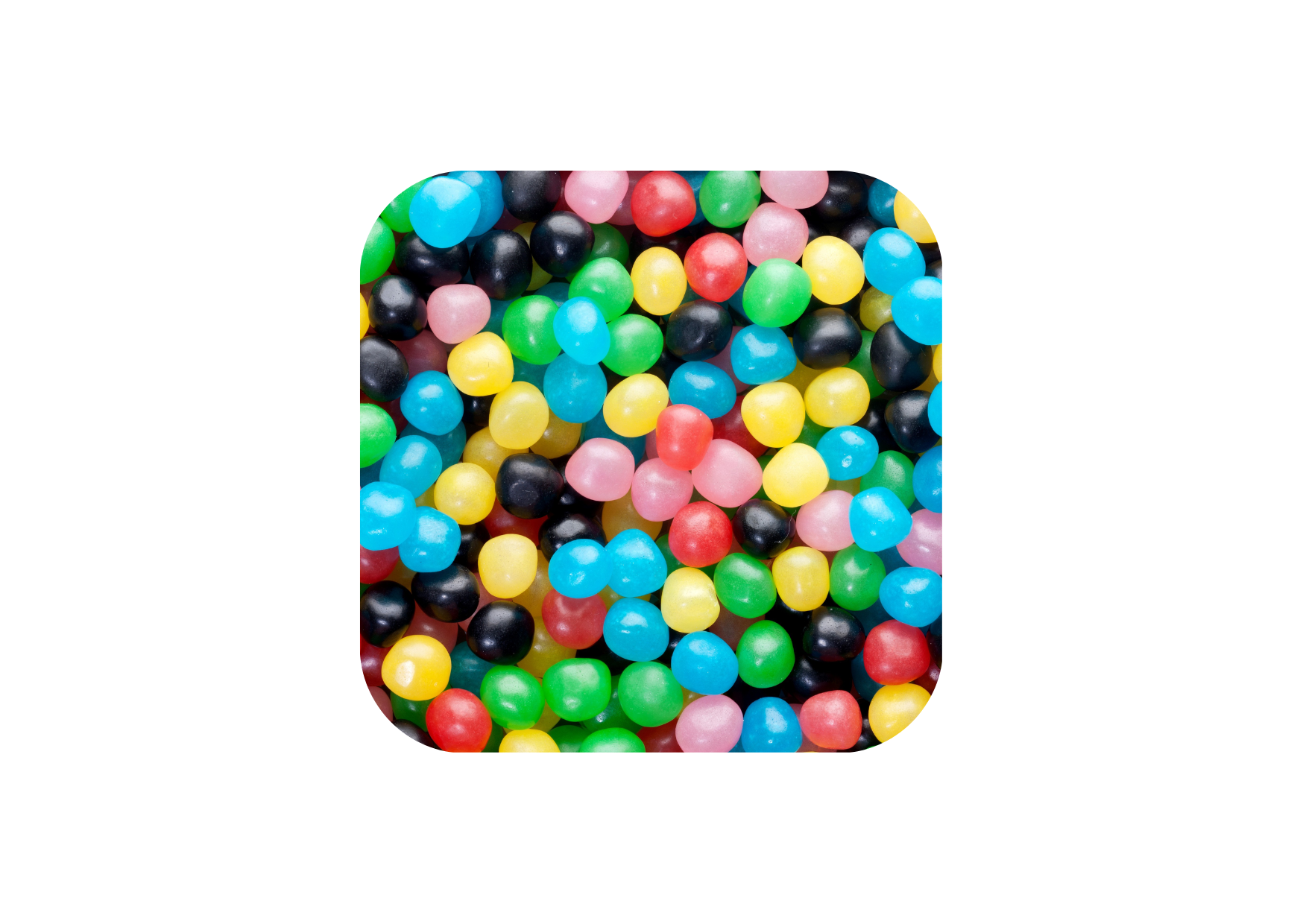 "Célèbre" petit bonbon de confiserie gélifiée aux parfums fruités.