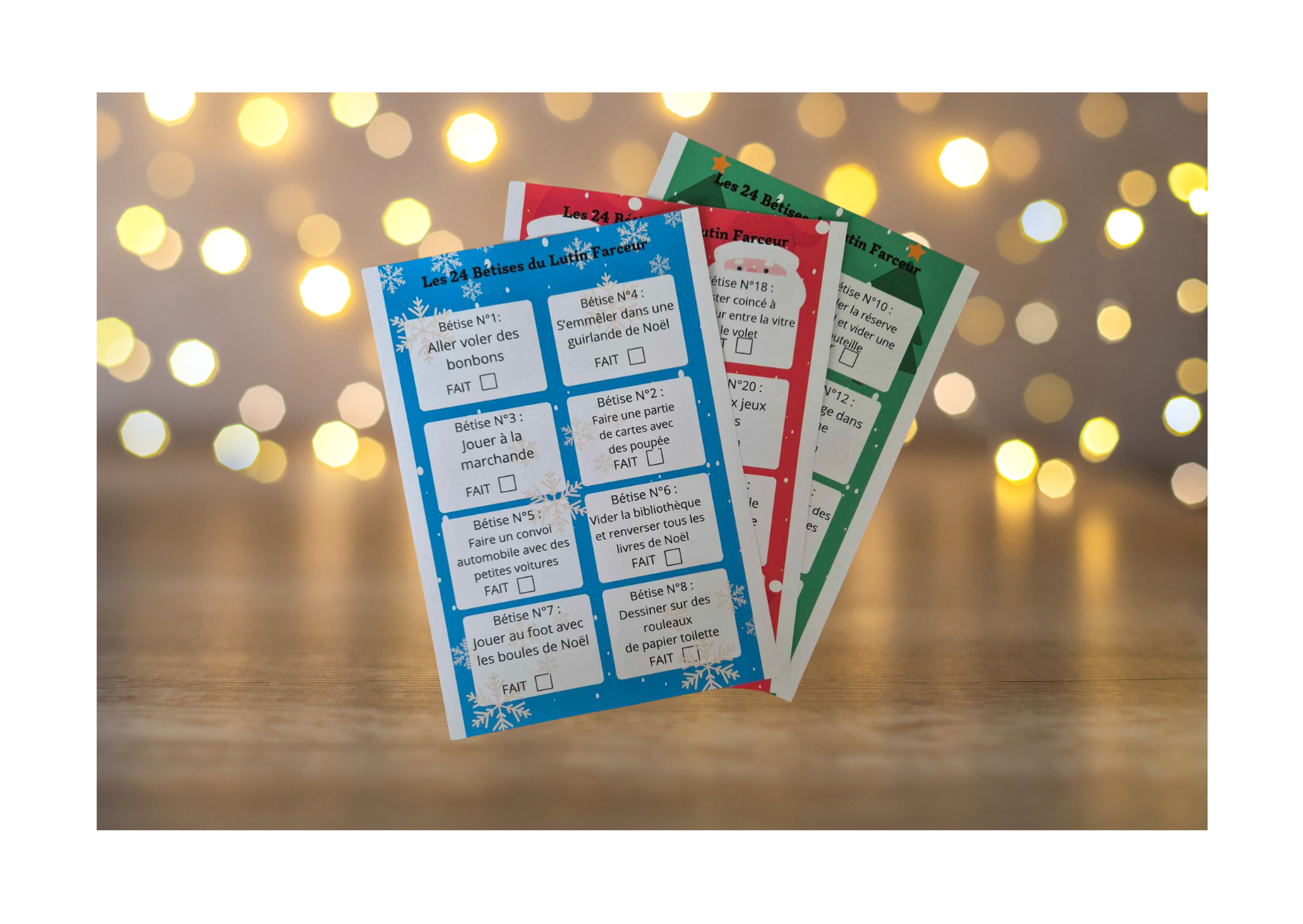 Ce kit comprend : 3 pages de 8 bêtises chacune pour faire rire vos enfants avant Noël !